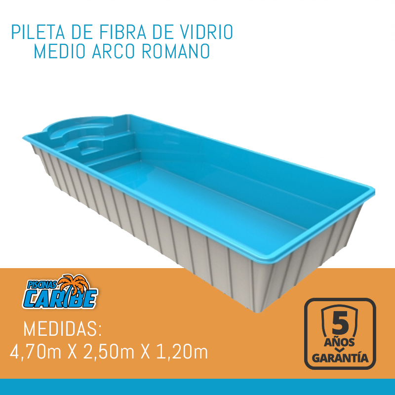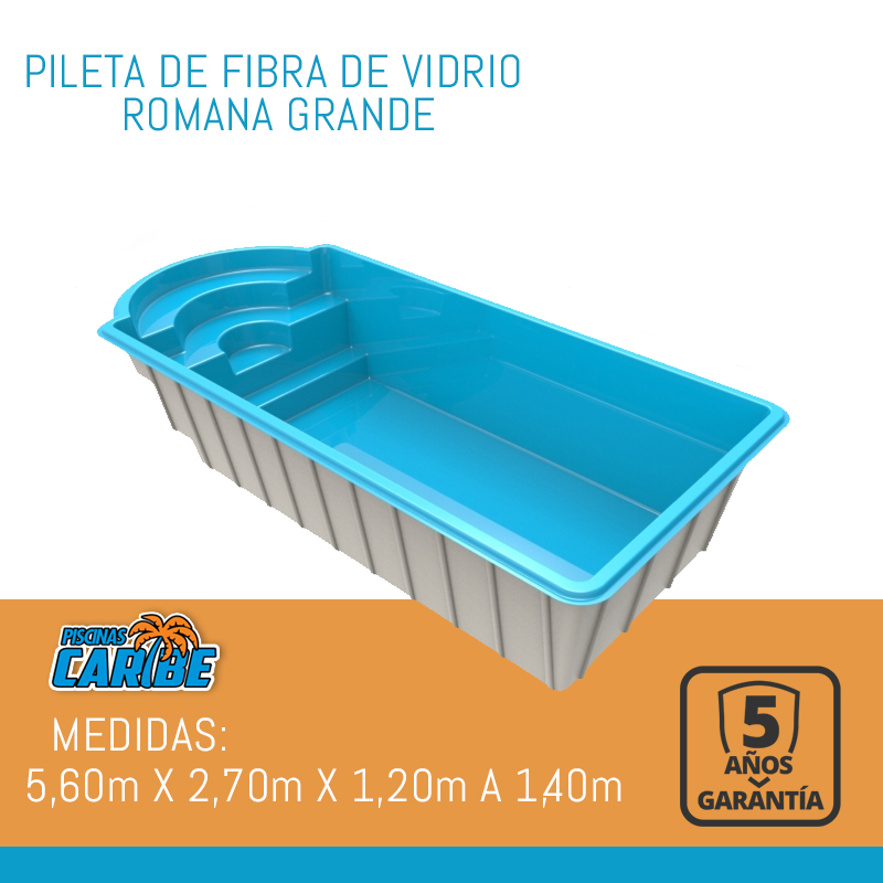 Atractivo, atemporal, simple, práctico y elegante; el estilo romano es un modelo que se adapta a cada situación. Su forma semicircular de escalera brinda una forma geométrica que le abre un sinfín de oportunidades de diseño. Su escalera semicircular se ha desarrollado especialmente para que en sus bancos se puedan realizar spas, Dependiendo del tamaño de su patio o el número de integrantes de la familia, Piscinas Caribe presenta este modelo en los dos tamaños.