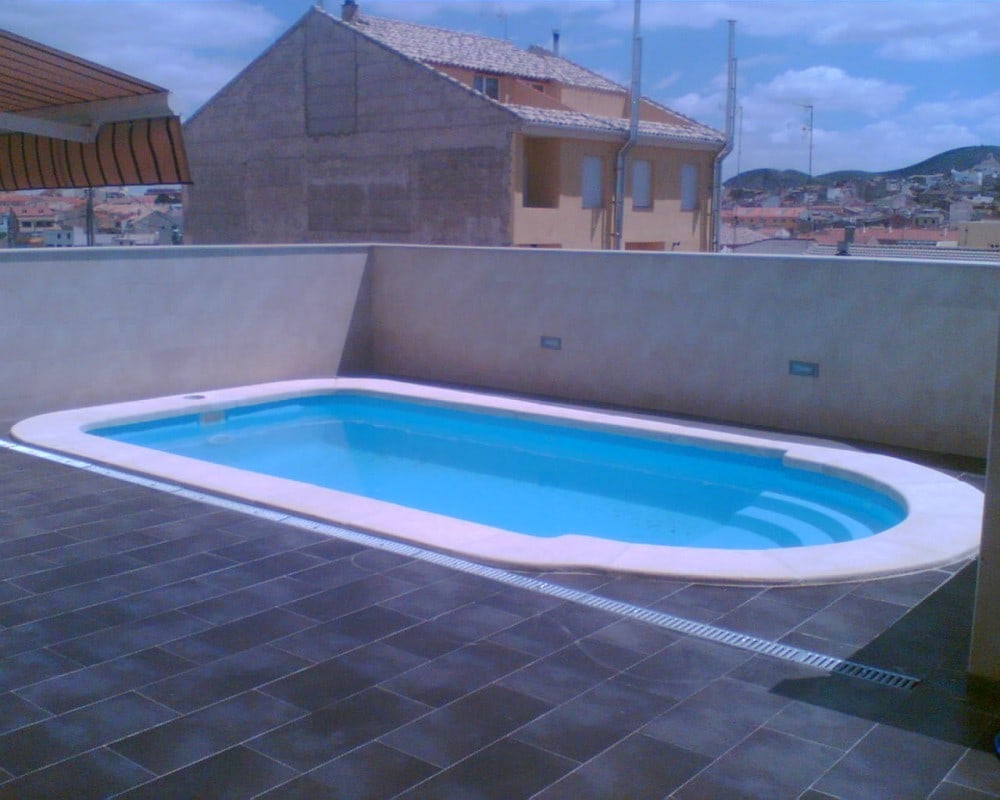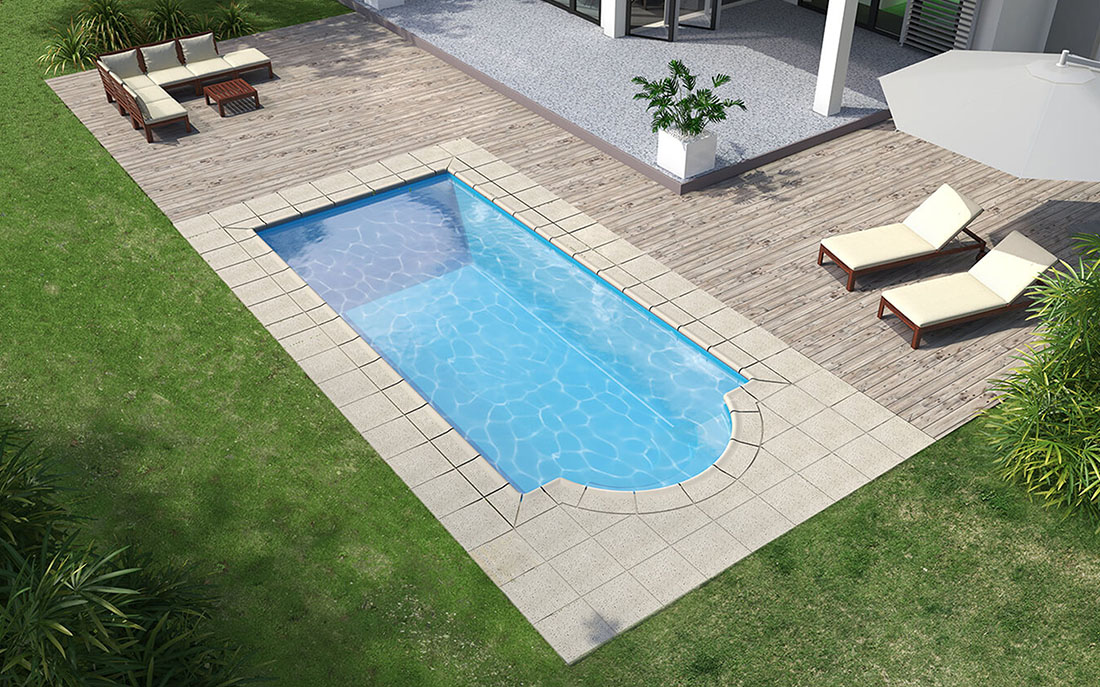 Este modelo satisface los deseos de los clientes más exigentes, que poseen terrenos con un espacio amplio. Su lámina de agua hacen de ella la piscina más grande y amplia. fabricada en una sola pieza. Con una escalera romana que se caracteriza por su comodidad y amplitud. Así que cumple de sobra con las necesidades más exigentes de cualquier hogar.